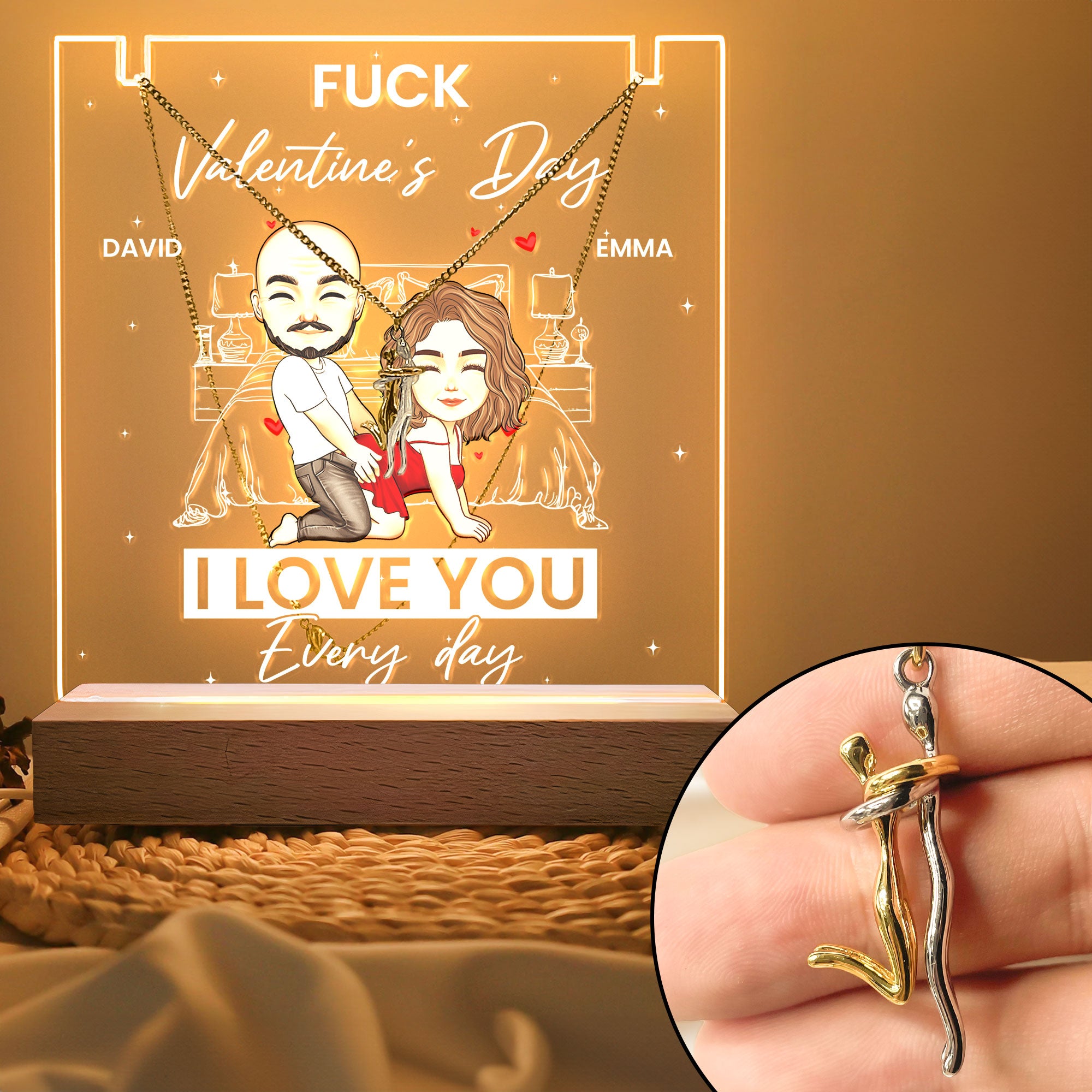 F*ck Valentine's Day I Love You Every Day - Personalized LED Light Acrylic Plaque With Couple Necklace