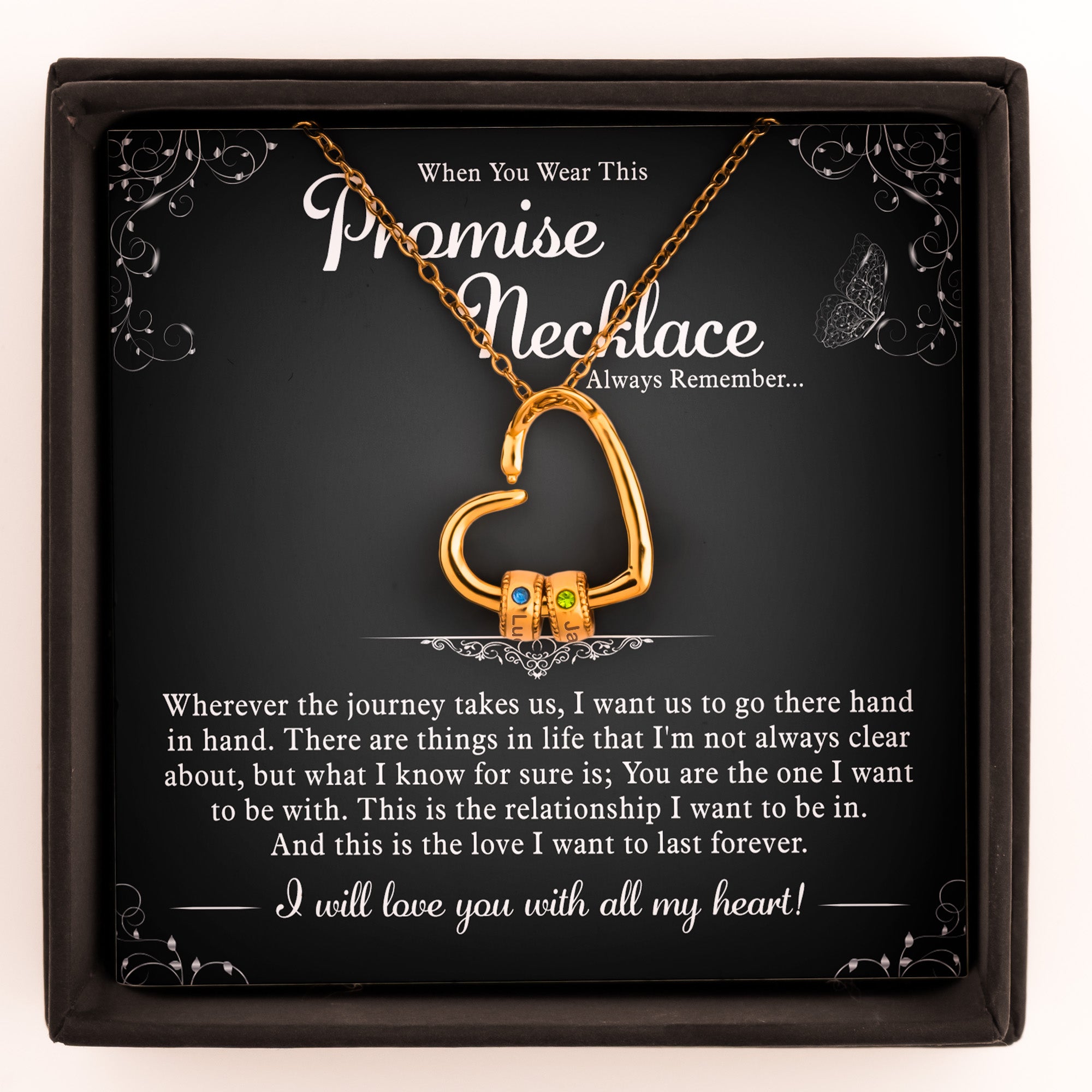 Promise Necklace Couple Gift For Her - Personalized Birthstone Name Necklace With Heart Pendant