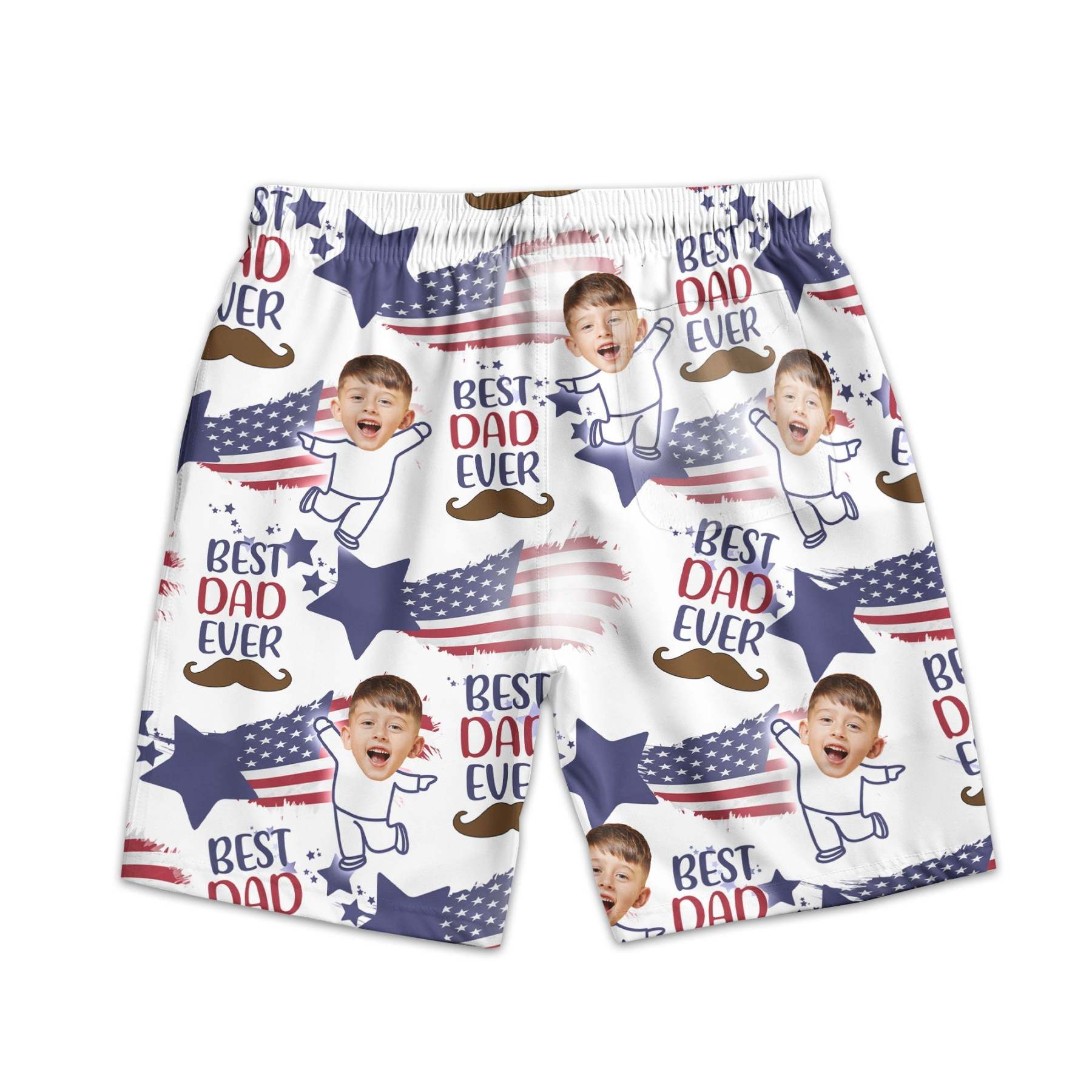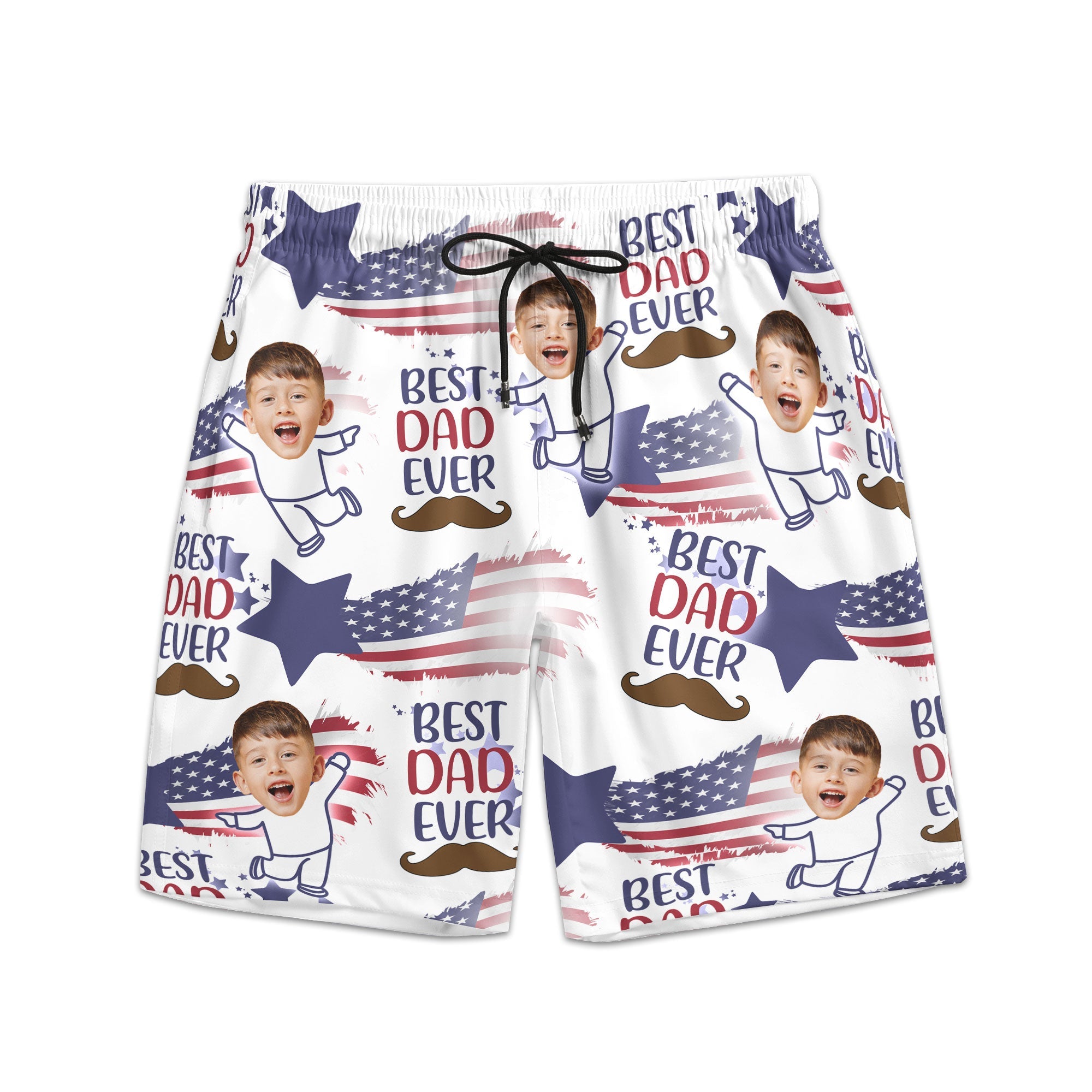 Photo Inserted Best Dad Ever - Personalized Photo Men's Beach Shorts