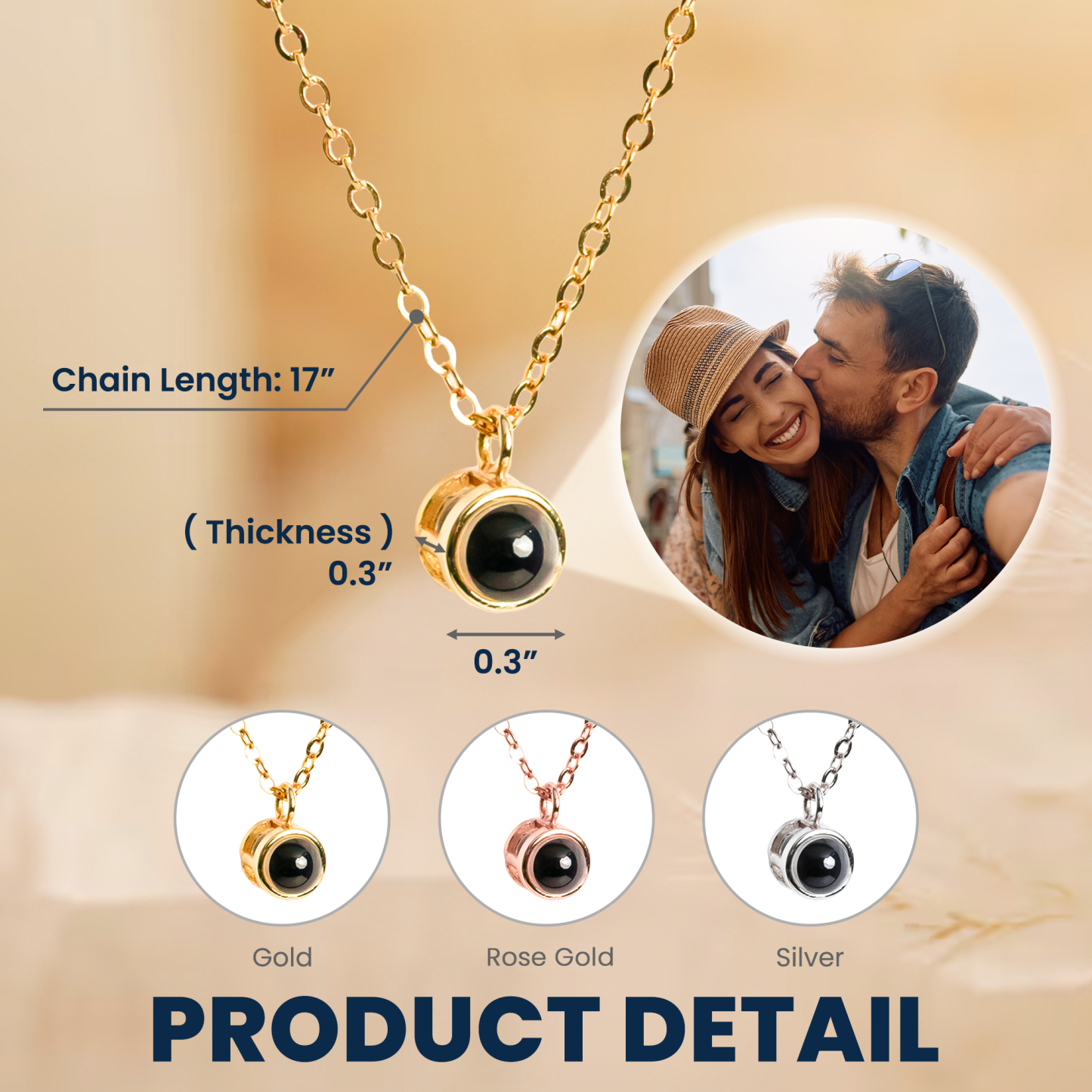 Crafted with elegance and attention to detail, this necklace is ideal for anniversaries, birthdays, or just to show appreciation to the love of your life. Whether it's a snapshot from your wedding day, a favorite vacation, or a spontaneous moment that means the world to you both, this necklace keeps that memory forever near.