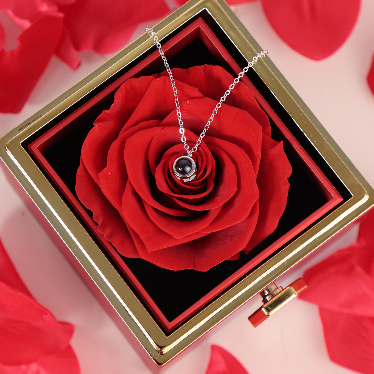 • Forever Flowers: Made from 100% real, fresh roses. This gift set includes a beautifully designed necklace, a preserved rose, and a luxurious reversible gift box.