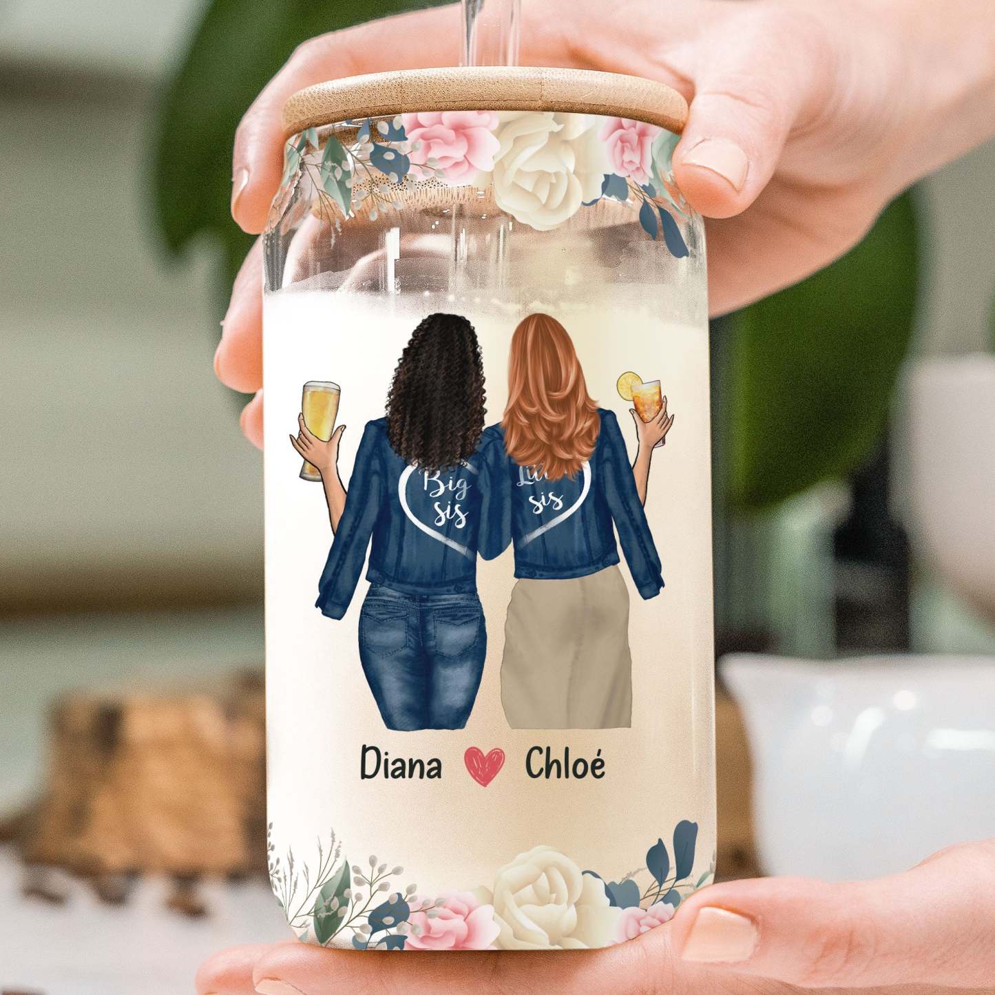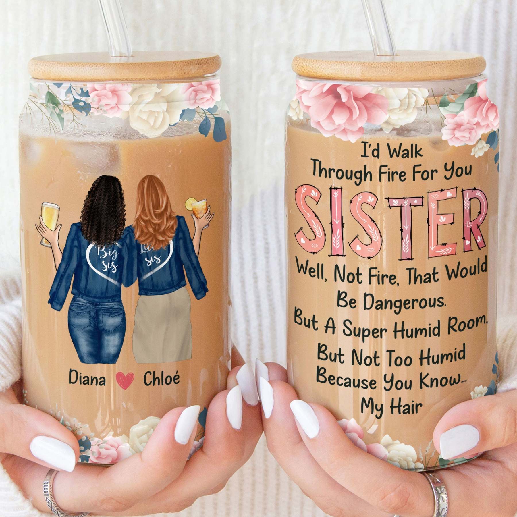 I'd Walk Through Fire For You Sister Rose Gift - Personalized Clear Glass Cup