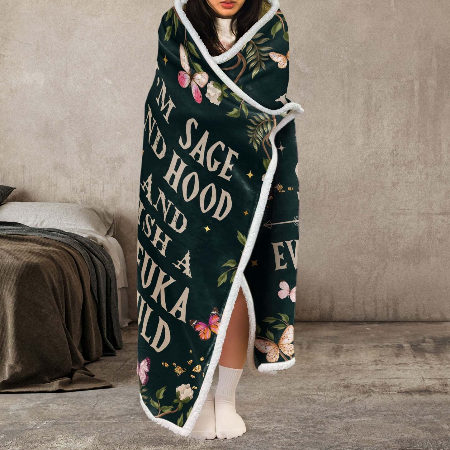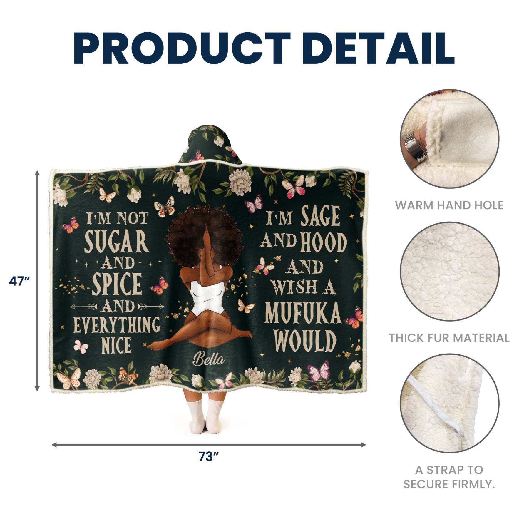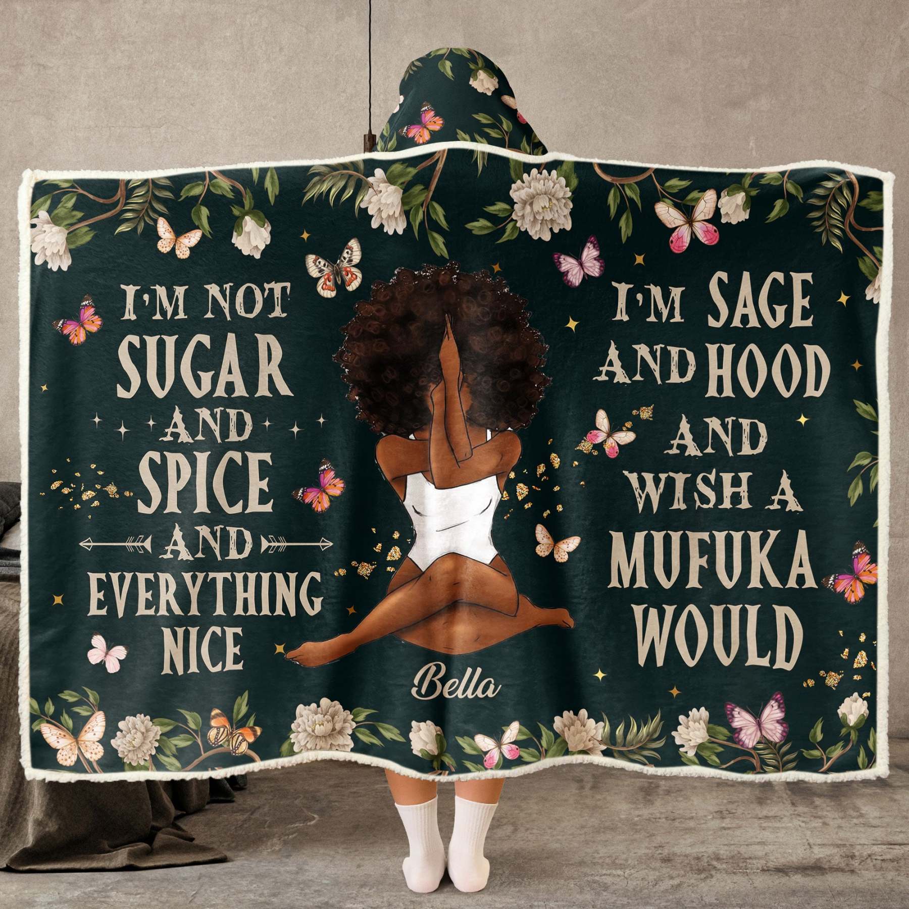 Add a touch of sass and soul to your cozy time with our Personalized Wearable Hooded Blanket—the perfect blend of peace, power, and personality! Featuring the bold phrase, this blanket is for those who walk their own path and embrace their light and their fire. Customize it with a character that looks like you or your gift recipient, making it a one-of-a-kind expression of spirit and self-love.
